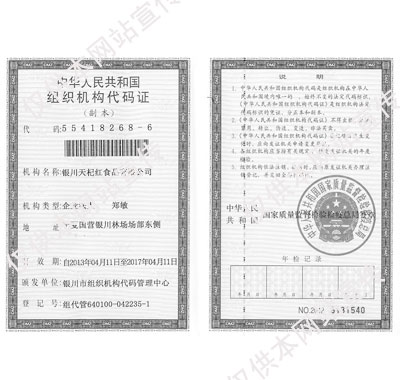 • 【产品名称】:组织机构代码证