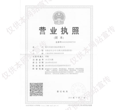 • 【招商厂家】:银川天杞红食品有限公司