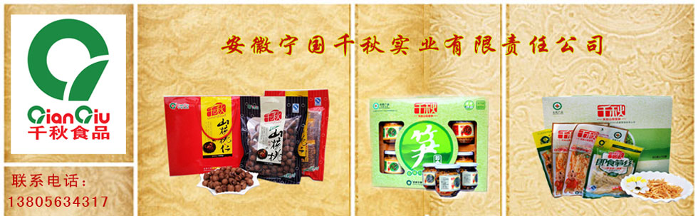 安徽宁国千秋实业有限责任公司成立于2002年,注册地为天目山下的宁国市仙霞镇,公司占地面积20000平方米(规划用地10万平方),现有厂房6000平方米,拥有员工百余名。宁国素有“中国元竹之乡”的美称,在仙霞、云梯一带竹笋品种资源丰富多样,公司依托深山丰富的竹笋资源,致力于开发和深加工竹笋系列产品,打造具有皖南特色的笋类产品,注册商标为“千秋食品”。公司已通过食品安全管理体系——HACCP认证及ISO9001:2000国际质量体系认证;千秋保鲜笋、即使笋均通过国家有机产品认证。公司还获得“安徽省林业产业化龙头企业”及“宣城市农业产业化市级龙头企业”、“宣城市旅游商品生产企业”等荣誉称号。