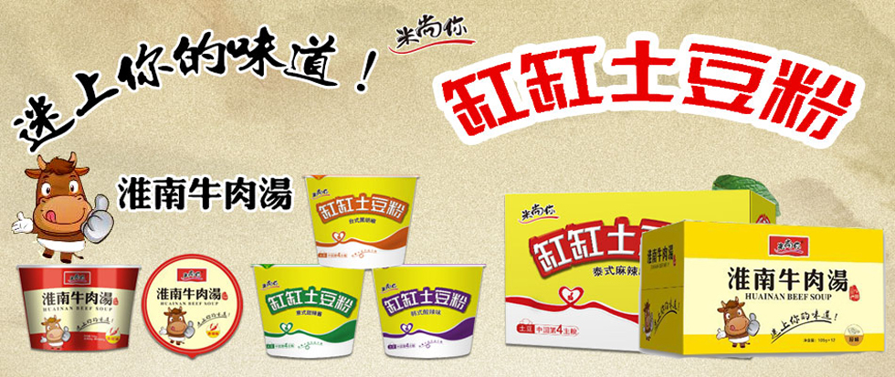 公司自2015年成立以来,响应国家将“土豆纳入国民第四主粮”的战略部署,积极研发速食土豆系列产品。现在我公司的“米尚你缸缸土豆粉”为国内速食 土豆粉品牌,产品包装精美、口感独特,深受行业和消费者的关注和青睐。 “米尚你淮南牛肉汤”继承中华美食的优良传统,以汤鲜、味美、粉滑等优点享誉全国。